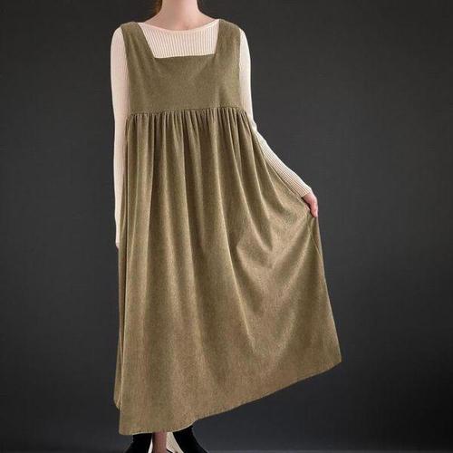 [신상오픈런]여성용 겨울 골덴 스퀘어넥 박시 기모 나시 롱드레스