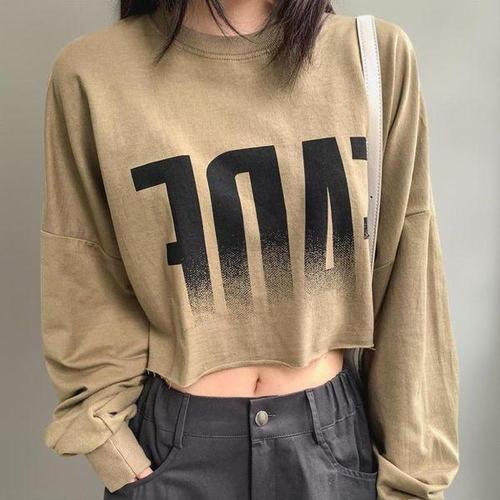 [다잇템]여자 컷오프 언발 필기체 시보리 박시 맨투맨