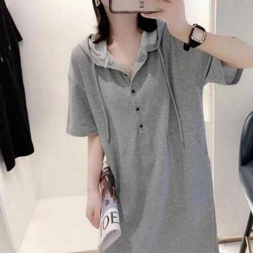 [에이치플러스몰]후드 박시 캐주얼 반팔 원피스 필수템 여름 여행룩
