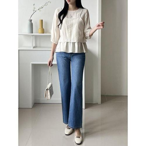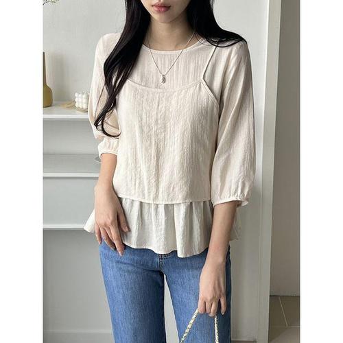 [3사이즈] 레이어드 스트랩 뷔스티에 블라우스