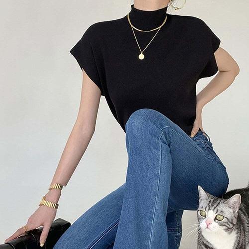 [셀럽하우스]여름 ZWHF4629 반목 니트나시 반폴라 나시목티 민소매 목폴라