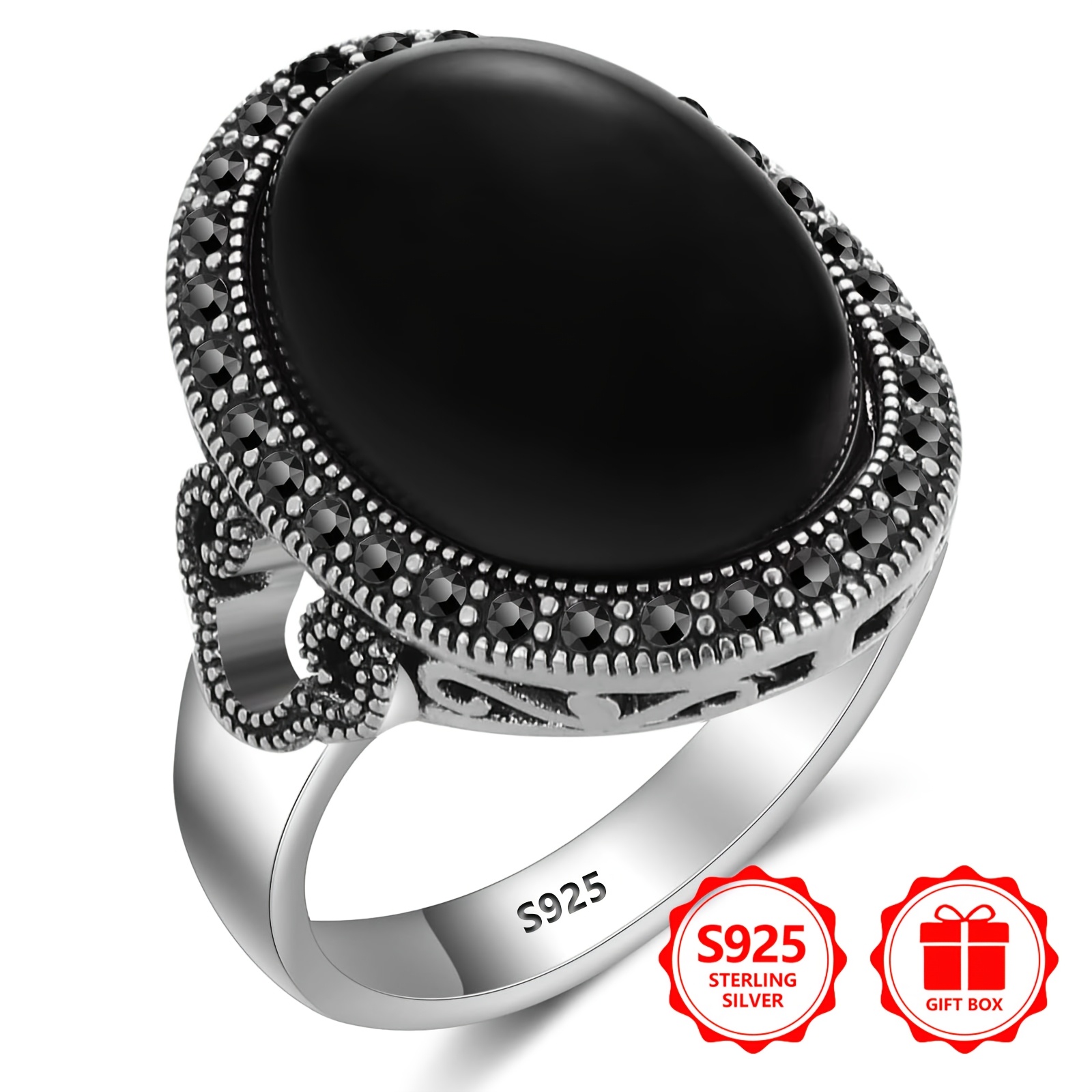 TEMU 1개 925 스털링 실버 빈티지 스타일 여성용 링, 대형 블랙 오닉스 스톤 - 크리스마스, 어머니날, 발렌타인데이, 추수감사절, 졸업식, 독립기념일 파티 선물로 완벽한 선택. 선물박스 포함