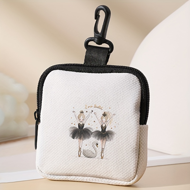 TEMU 시크한 발레 댄서 패턴 동전 지갑 - 넉넉하고 튼튼한 폴리에스테르 지갑, 열쇠 거치대 포함, 여성에게 이상적인 선물