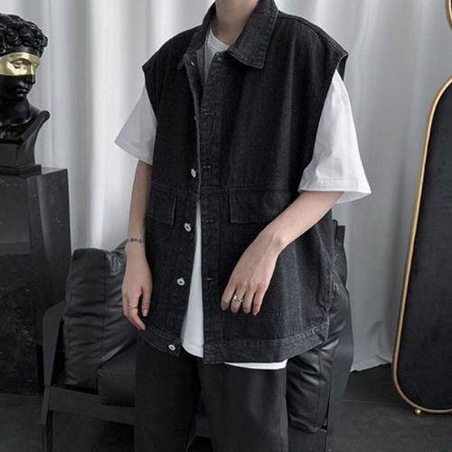 [에이치플러스몰]남성용 청 데님 조끼 레이어드 남방 반팔 셔츠