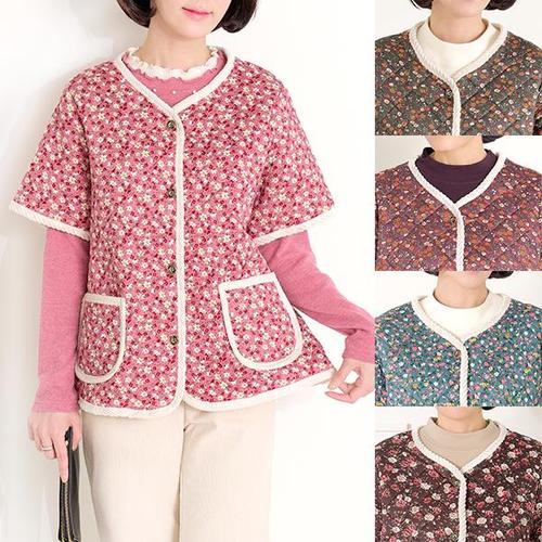 엄마옷 마미소 단추 김장 반팔 조끼 할머니 촌캉스 꽃무늬 누빔 할머니 빅사이즈 40 70 마담 중년 여성 옷