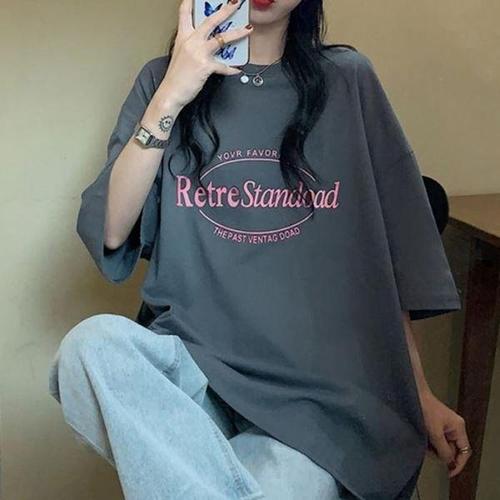 [셀러허브_여성트랜드패션]여성 셔츠 레터링 여름 반팔 루즈핏 티 여자반팔티 차콜그레이 여자여름티 여..