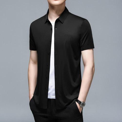 남성 솔리드 반팔 슬림핏 와이셔츠 남자 정장 무지 셔츠 남방 직장인 회사원 선물 여름 성인 / 3064 블랙