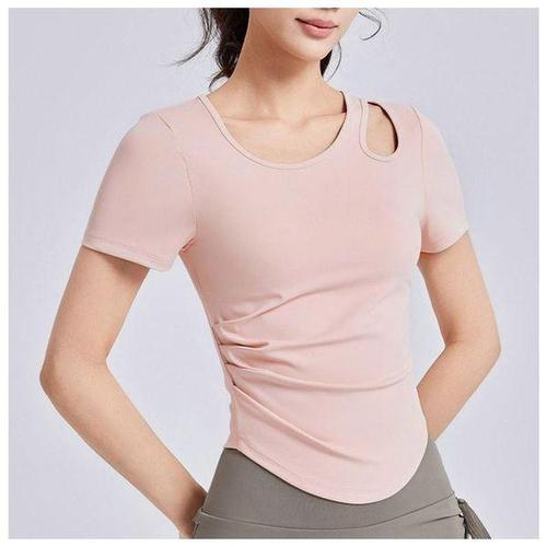 [에이치플러스몰]어깨펀칭 셔링 반팔 요가복