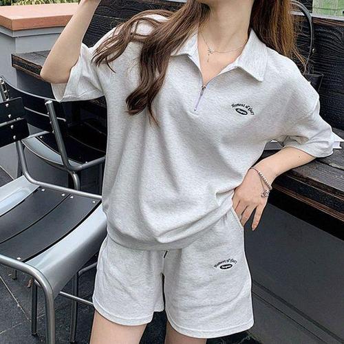 [에이치플러스몰]반집업 트레이닝 세트 카라 반팔 반바지 홈웨어