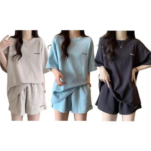 [셀러허브_여성트랜드패션]세트 와플 시원한 쿨 반바지 추리닝 여름 남자 반팔