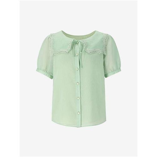 맵시난다 시원한 블라우스 퍼프 소매 러블리 카라넥 여름 엘레강스 반팔 셔츠 U105