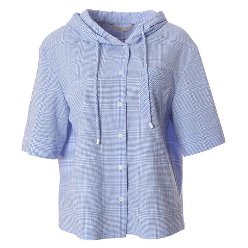 [안지크]블루 체크 후드 반팔 셔츠 AJ2BL5360