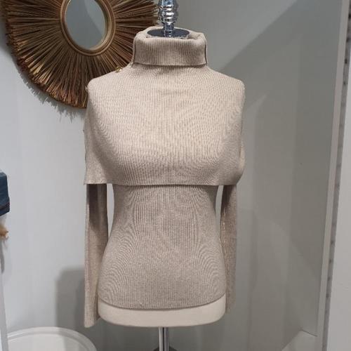 [르피타]르피타 HC06 숄더 케이프 일체형 터틀넥 골지니트(오트밀) L254USWC06 (45729554)