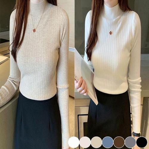[에이치플러스몰]베이직 여성 폴라티 긴팔 티셔츠 무지 골지니트 상의 긴팔티셔츠