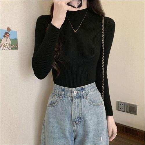 Mersi 14컬러 스판쫀쫀 보들보들 골지 스판 파스텔 반목폴라 니트 목티 스웨터 티셔츠