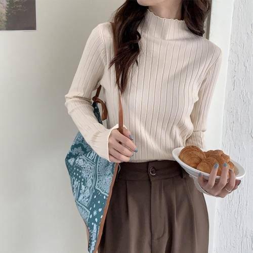 [오노마] ONM 이너 방한 여성 스타일 골지니트 슬림핏 폴라니트 겨