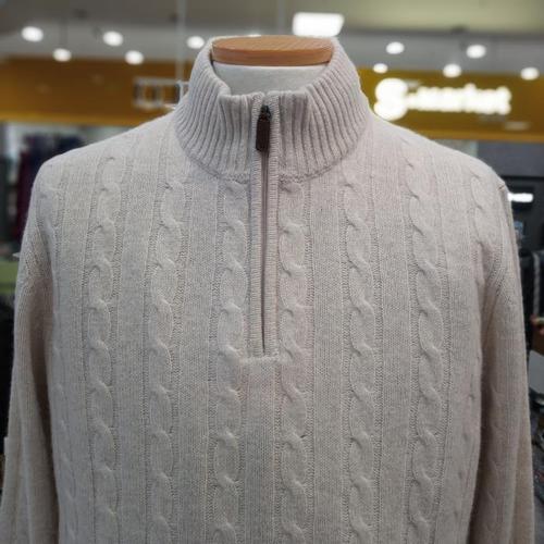 [바쏘옴므]남성 슬림핏 베이지울캐시미어 반폴라니트ABGWSY4WN78