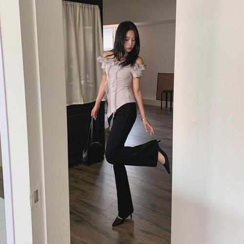 [옷자락]여자 엉덩이커버 언발 여름하객룩 반소매 프릴넥 블라우스