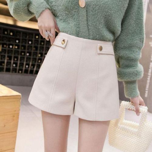 [에이치플러스몰]키밍 겨울 모직 반바지 하이웨이스트 슬림 여성 팬츠