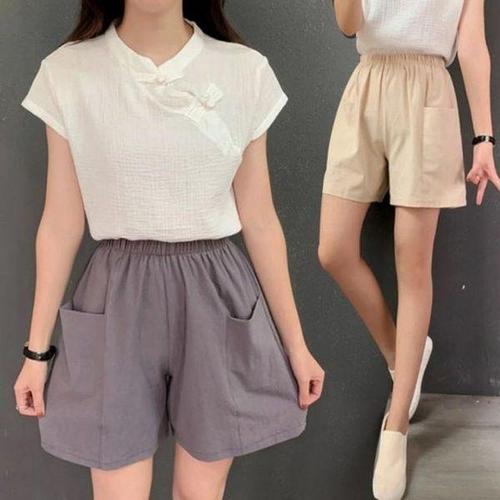 [에이치플러스몰]팬츠 반바지 반바지코디 레이어드 린넨팬츠 여름 하이