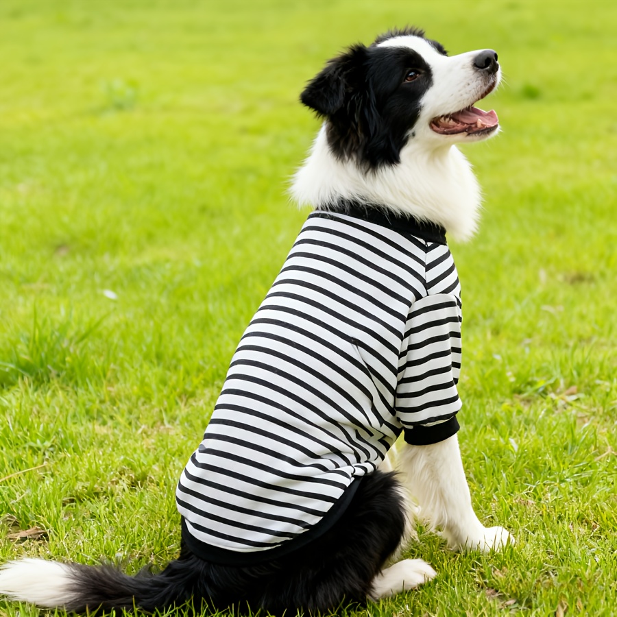 TEMU 대형견용 기모 안감 크루넥 블랙 앤 화이트 캐주얼 스웨트셔츠 | 폴리에스터, 니트 원단, 풀오버 스타일, 겨울철에 적합