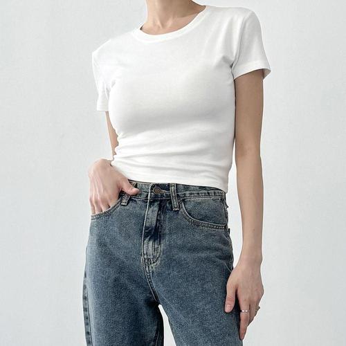 구디프 여성용 통기성 여리여리 슬림 U넥 크롭 티셔츠