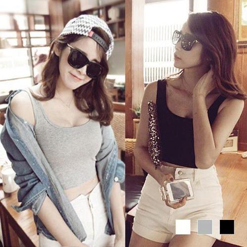 [에이치플러스몰]여성 크롭 민소매 나시티 크롭나시 배꼽티