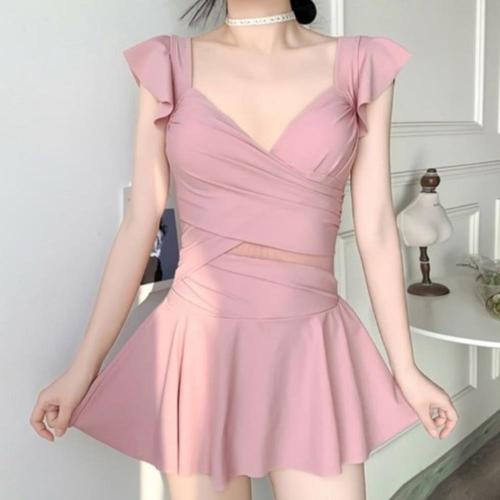 휴가 핑크 프릴 원피스 비키니 여성 수영복 바캉스 호캉스