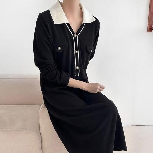 [샵앤]국산 여성 라운드 밑단 배색 롱원피스 ARA-WDR-4948-블랙