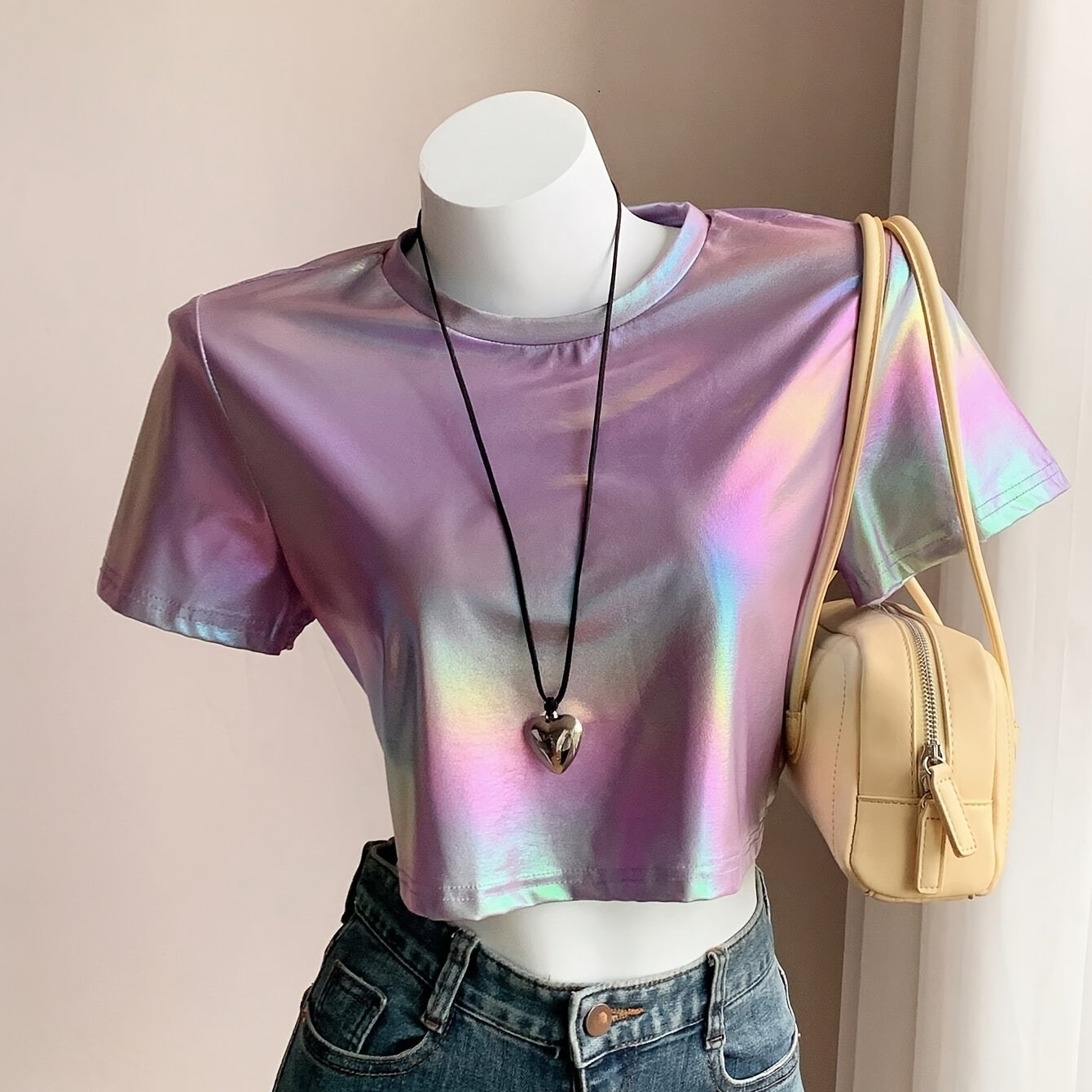 TEMU 새로운 니치 컬러 체인징 스무스 반팔 루즈핏 티셔츠, 중장대형, 미디엄 투 롱 베이스, 소형 탑