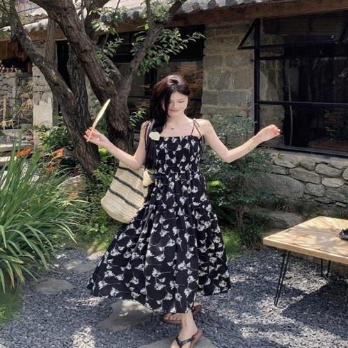 끈나시 나염 원피스 시폰 캐주얼 한 시원 백리스