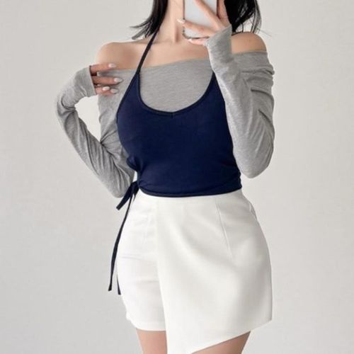 여성 캐주얼 면 밴딩 옆두줄 미니 스커트 짧은 치마