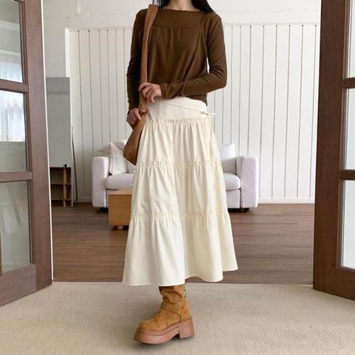 [다잇템]여자 미니멀리즘 핀턱 티어드 롱 백밴딩 스커트