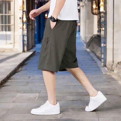 [에이치플러스몰]여름 정장 카고 팬츠 면반바지 허리밴딩 와이드