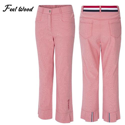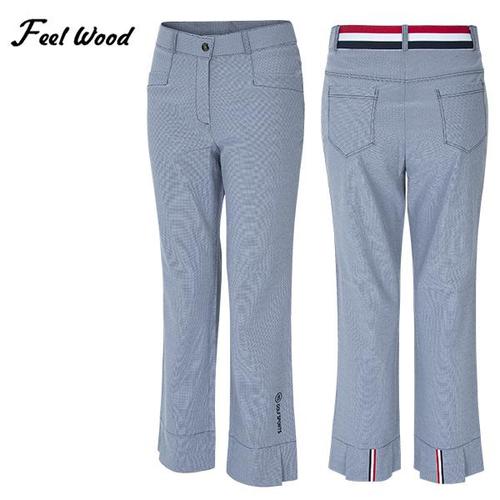 [기타]미니체크 뒷주름포인트 허리밴딩 여성 스판 골프 바지_101360