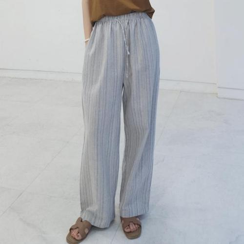 [헤이데이즈]1164 (주름없는, 비침없는) 린넨 스트라이프 와이드 밴딩 팬츠