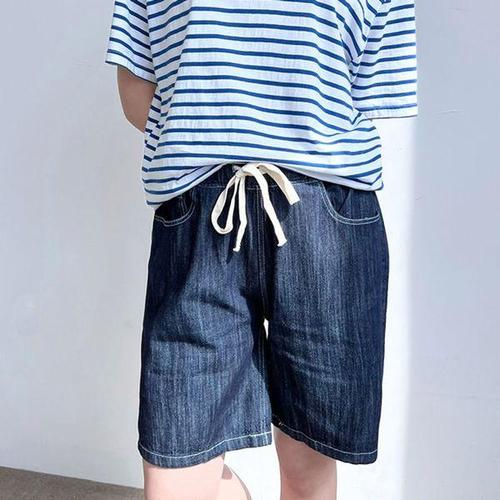 여자 여름버뮤다 5부 워싱 속밴딩 면 청반바지_4