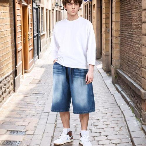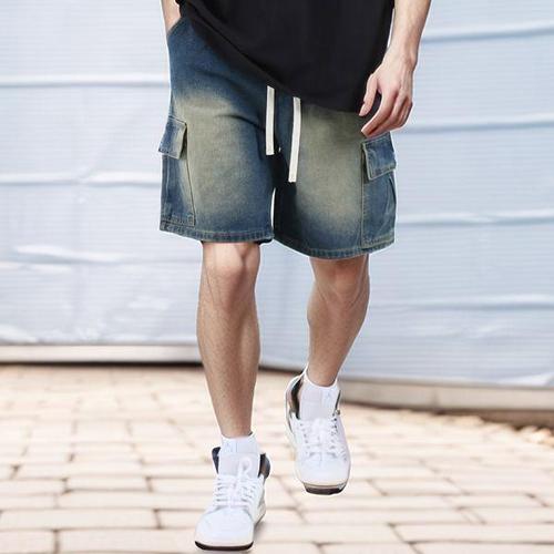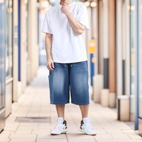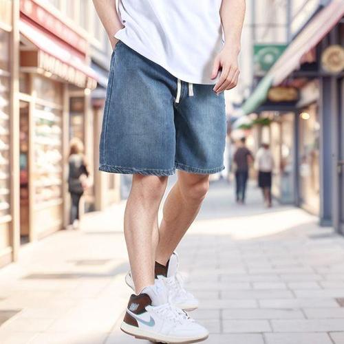 [셀러허브_여성트랜드패션]데님 남성 와이드 반바지 밴딩 5부 남자 청반바지