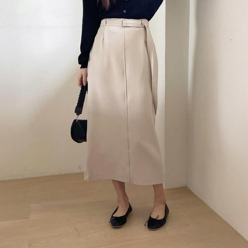 [옷자락]여성 오피스 패션 데일리 하객 스타일 벨트 미디 스커트