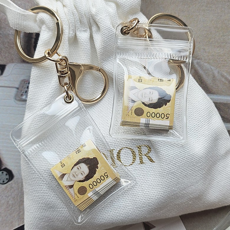 성공 행운 부적 돈다발 키링 5만원권/100달러 인형 키링 시험 가방고리