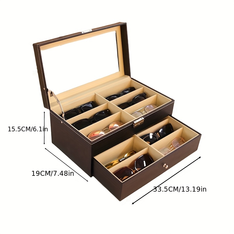 TEMU 12구 가죽 안경 보관 및 진열 상자, 고급 다용도 칸막이 안경 정리함 (가정용)