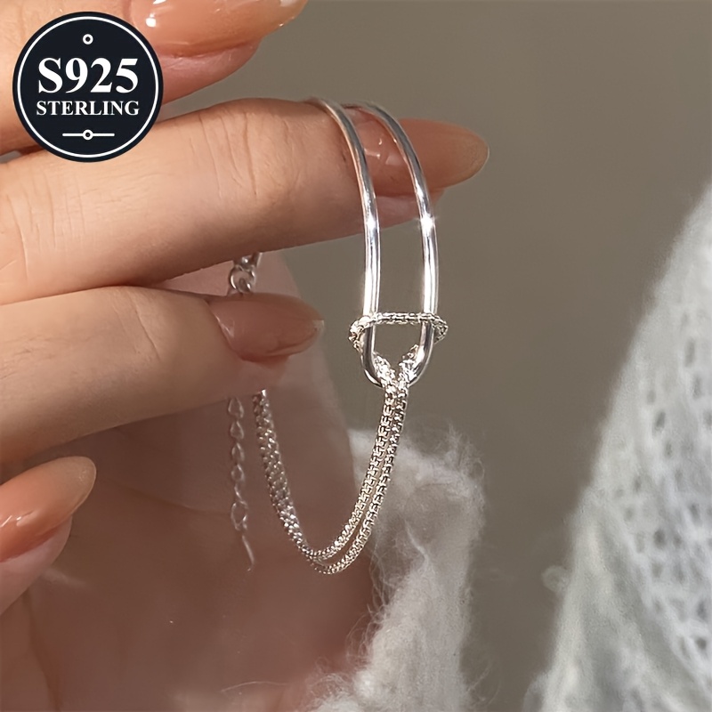 TEMU 925 실버, 저자극성, 이중 레이어 체인 및 매듭 디자인, 인스 스타일의 고급 액세서리, 우아하고 미니멀한 주얼리, 커플 또는 절친을 위한 고급스러운 선물
