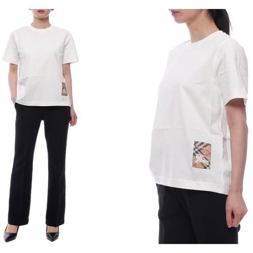 [버버리]25SS 여성 체크 라벨 반팔티셔츠 (8104886 CHALK 25S)