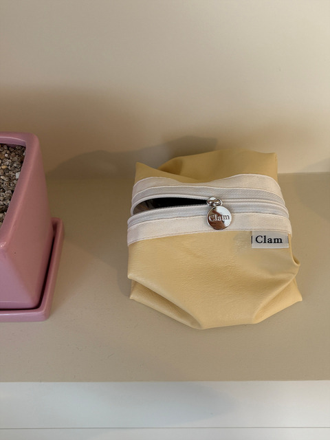 [클램] 클램 라운드 파우치_ 레더 레몬 크림