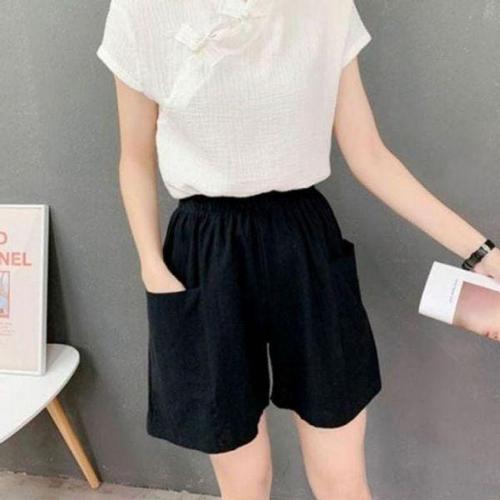 [에이치플러스몰]여름바지 린넨바지 캐주얼 하이웨스트 반바지 필수템