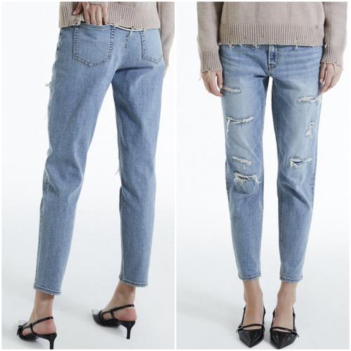 [버커루]여성 데미지 슬림배기 M톤 데님 팬츠_US