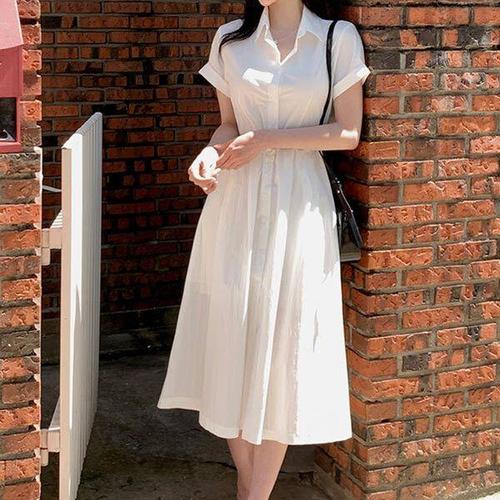 [디어로우]D08 카라 버튼 플레어 셔츠 원피스