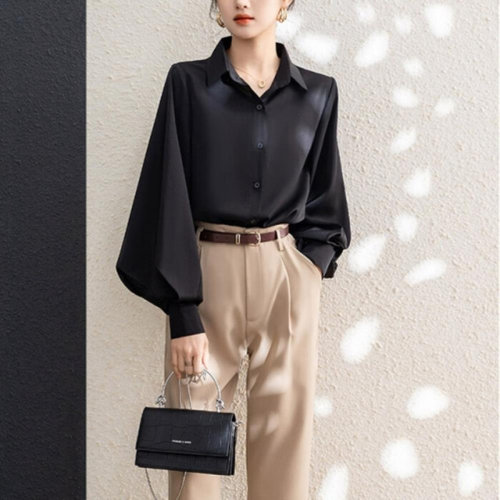 [신상오픈런]여성 사무실 패션 루즈핏 쉬폰 벌룬 소매 긴팔 블라우스