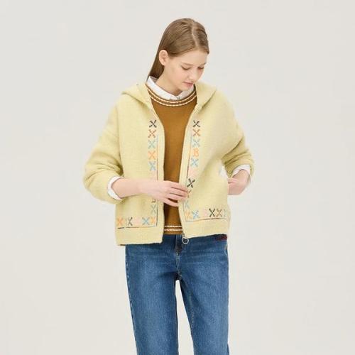 [베네통]단작 자수 후드 집업 니트 가디건_BAKC07511