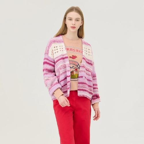 [베네통]배색 크로셰 카라리스 니트 가디건_BAKC10511